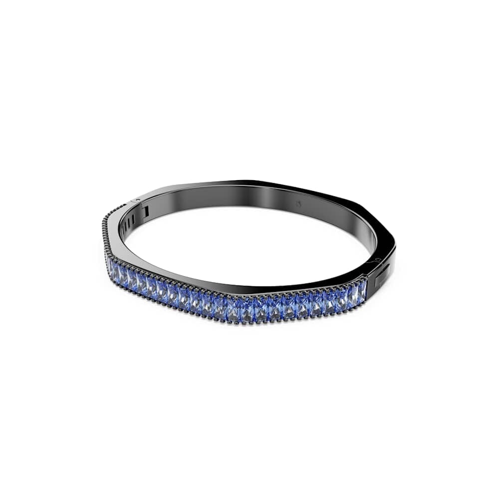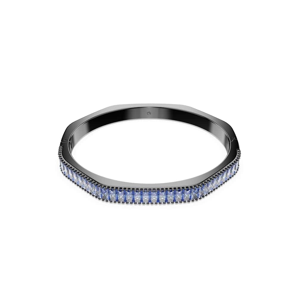 Eleva tu look diario con este brazalete Matrix con bisagra. Este diseño bañado en rutenio está elaborado con la emblemática forma octogonal de Swarovski y está adornado con Swarovski Zirconia azules en talla baguette con engaste vertical. Perfecto para crear combinaciones apiladas con otros brazaletes Matrix a juego, es una explosión del característico color de Swarovski para expresar tu faceta más vibrante.