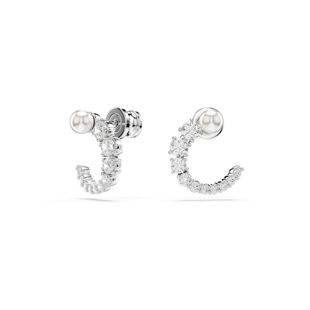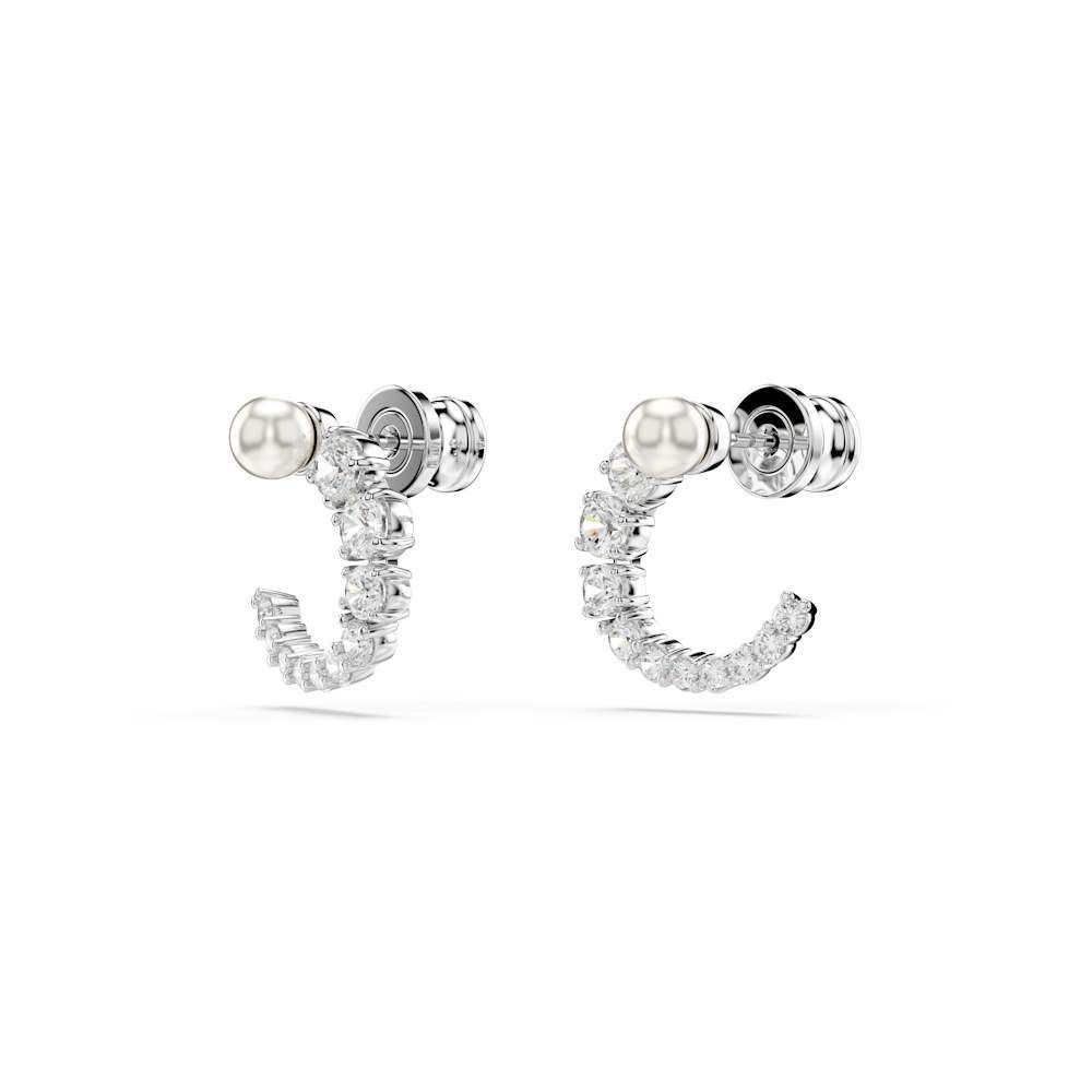 Caravanas de aro Matrix, Crystal Pearl, Talla redonda, Blancos, Baño de rodio