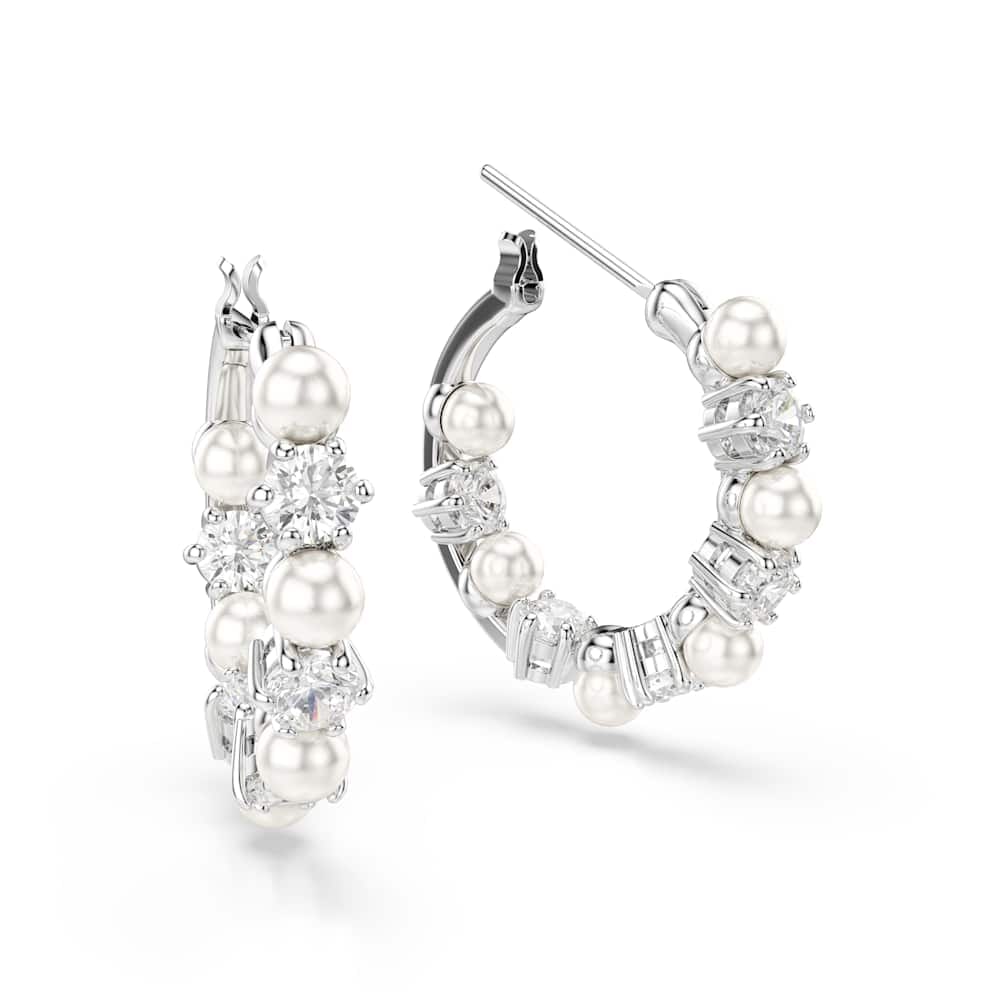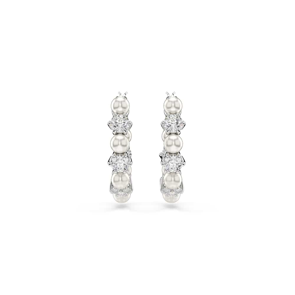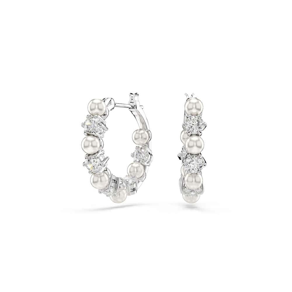 Estas Caravanas Matrix son una versión única y contemporánea del estilo de aro clásico. Cada pieza está bañada en rodio y adornada con Swarovski Zirconia y Swarovski Crystal Pearls alternadas. Son una declaración de sofisticación que transformarán cualquier atuendo ordinario en extraordinario.