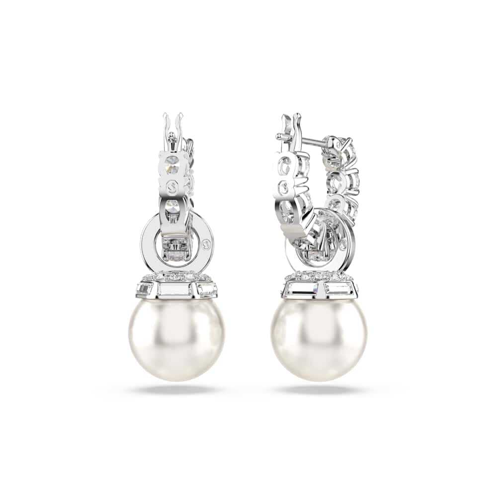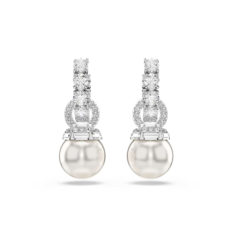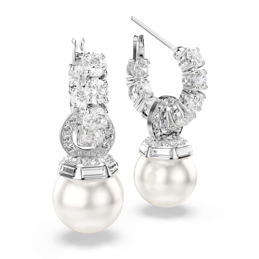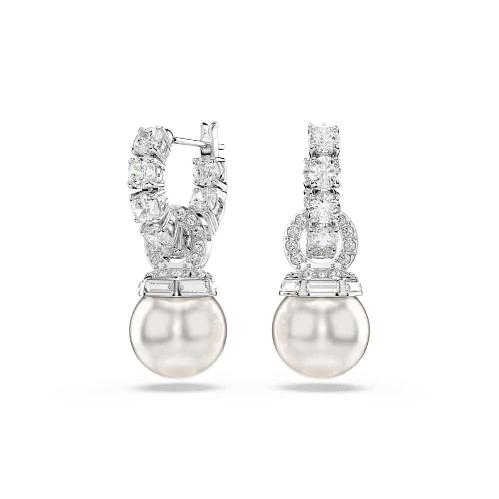 Aumenta la elegancia de tu estilo con estos pendientes Matrix. Estas piezas bañadas en rodio presentan aros de estilo tenis y anillos conectores adornados con un deslumbrante pavé, mientras que las Swarovski Crystal Pearls añaden un toque clásico de puro refinamiento. Una reinvención de un look atemporal que podrás lucir en casi cualquier ocasión.