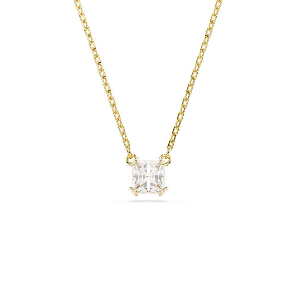 Colgante Stilla, Talla cuadrada, Blanco, Baño tono oro