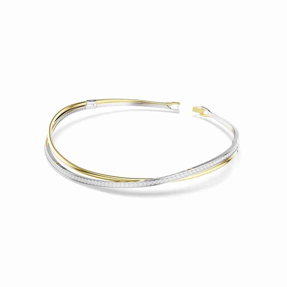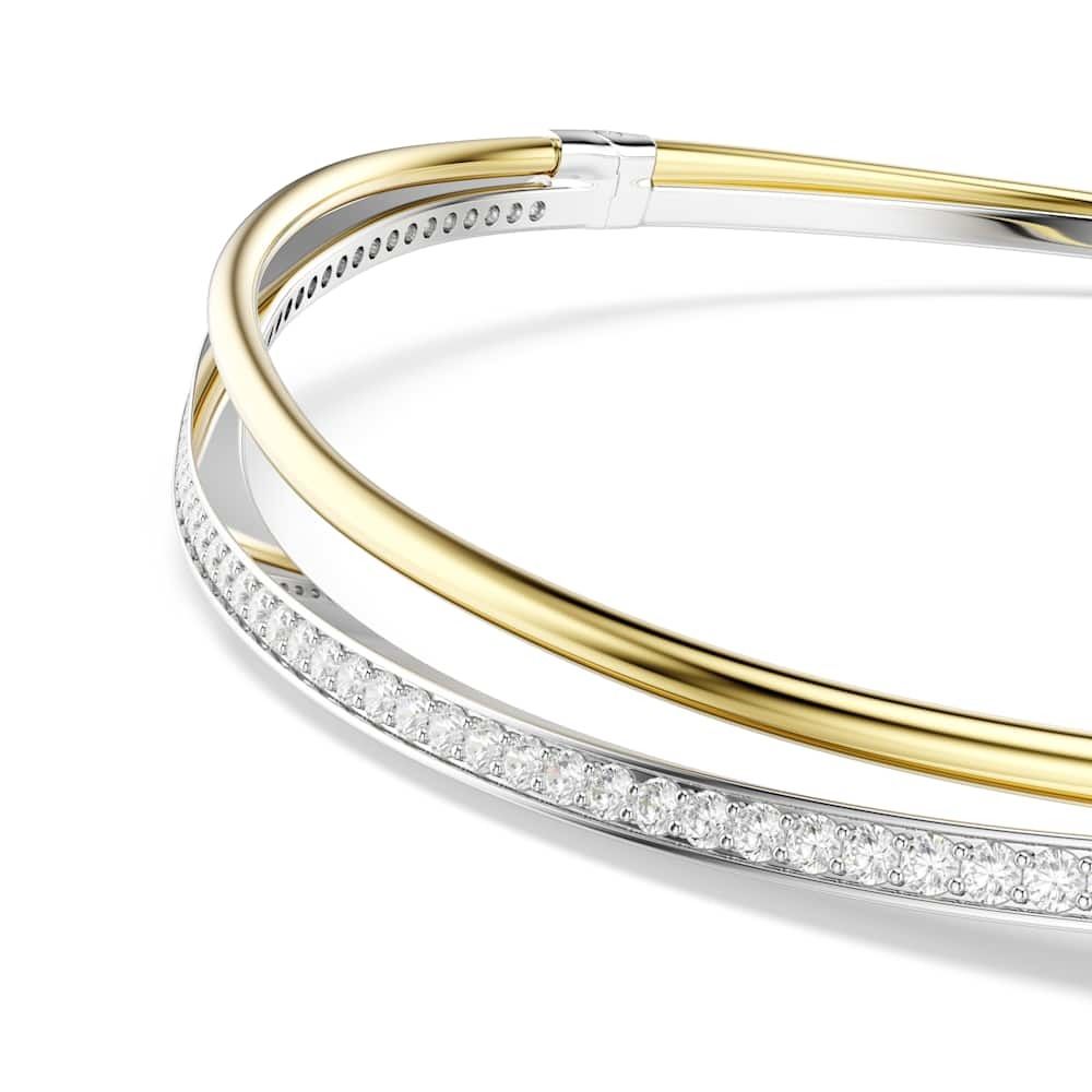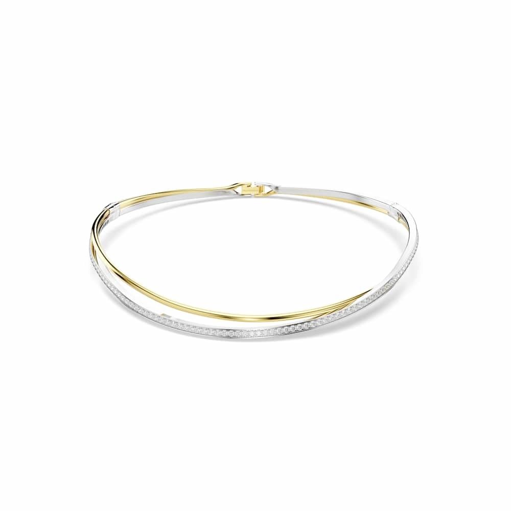 Una dosis de lujo doble, ya que este refinado collar de Swarovski presenta dos bandas superpuestas con colores en contraste. Un strand bañado en tono oro se entrelaza con otro bañado en rodio, adornado con Swarovski Zirconia de talla redonda en un radiante engaste de canal. Una hipnotizante fusión de metales mixtos que combinan a la perfección con la gama Hyperbola a juego.