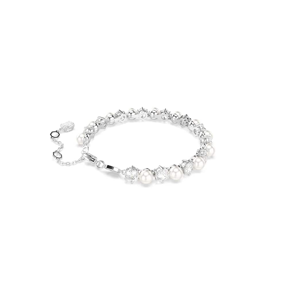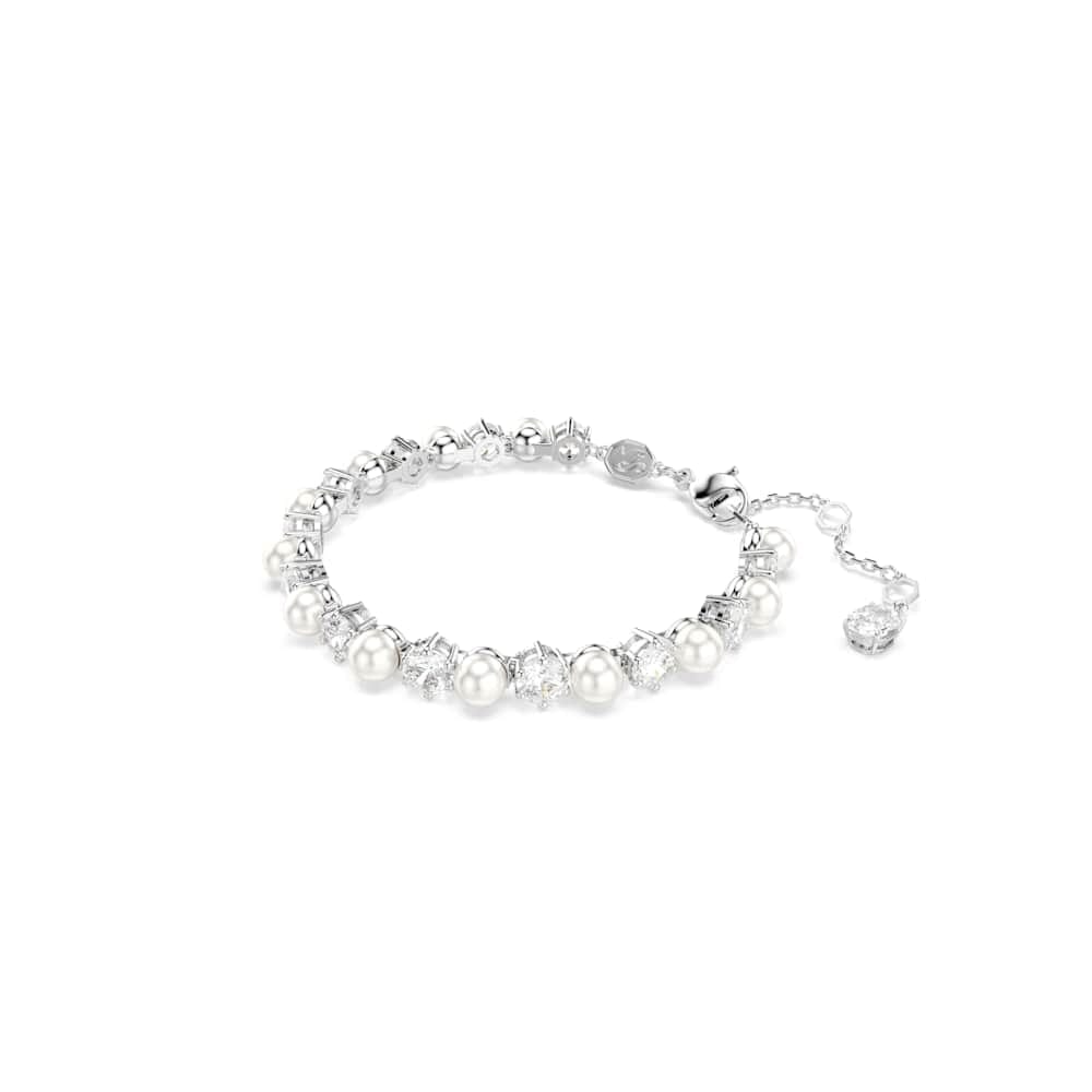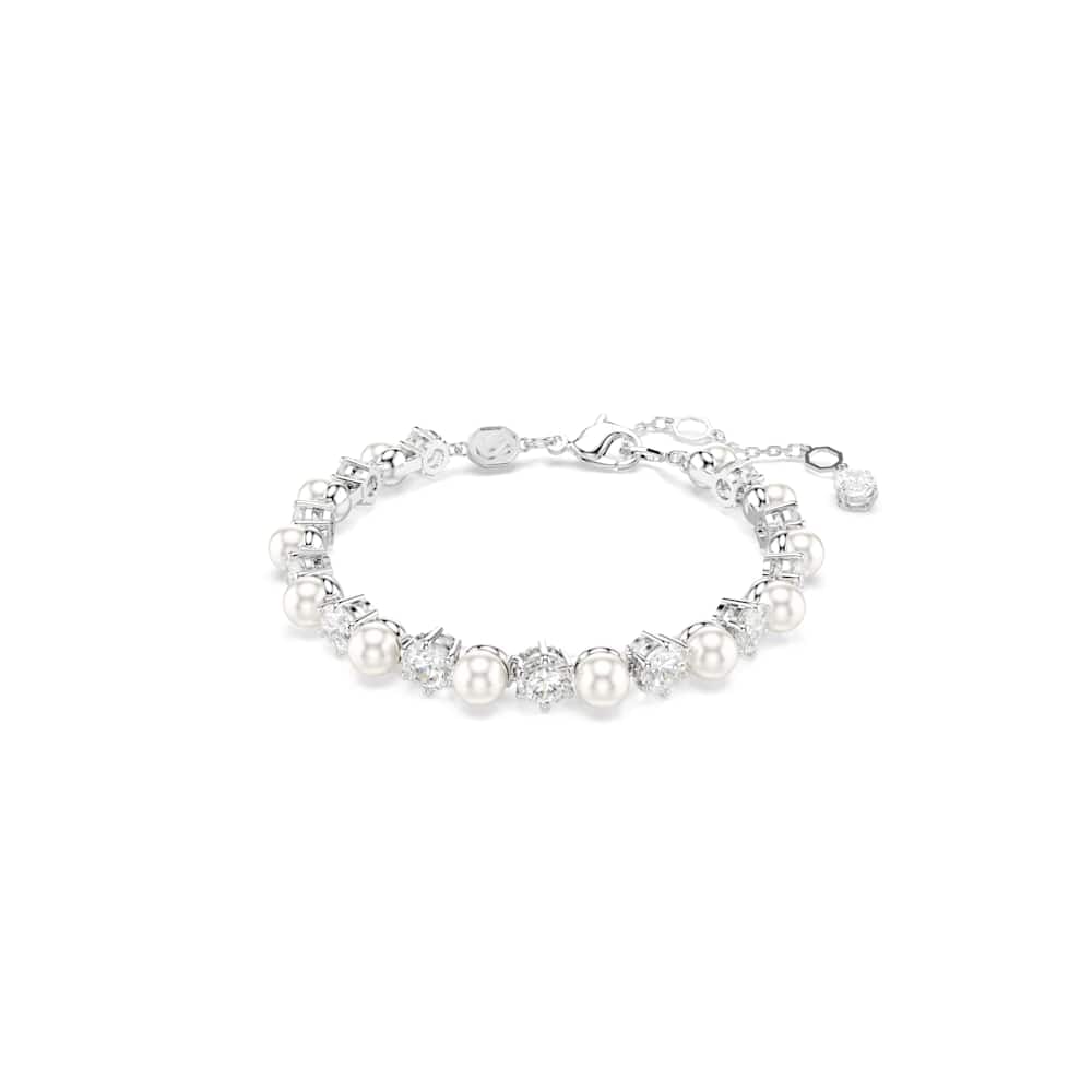 Pulsera Tennis Matrix, Perla de cristal, Talla redonda, Blanca, Baño de rodio