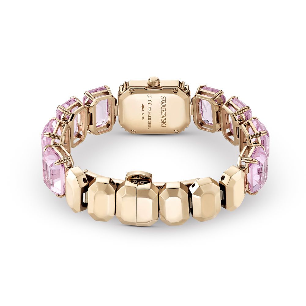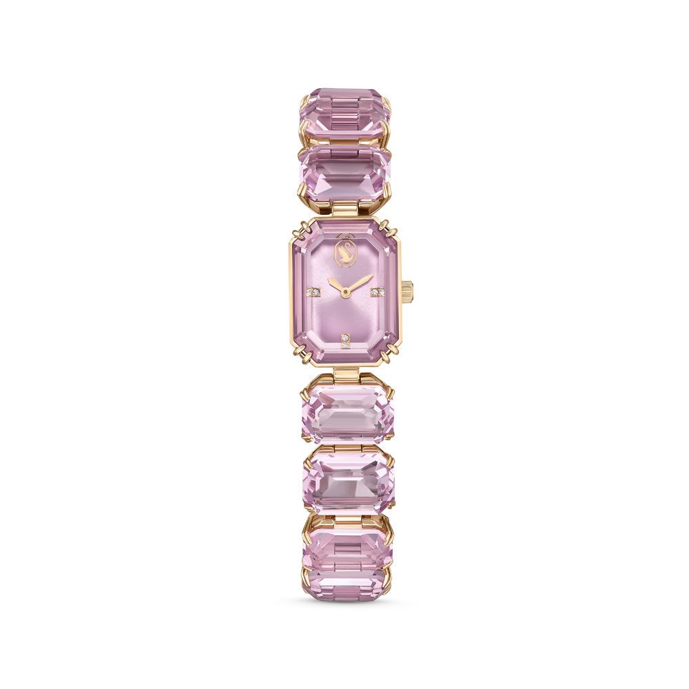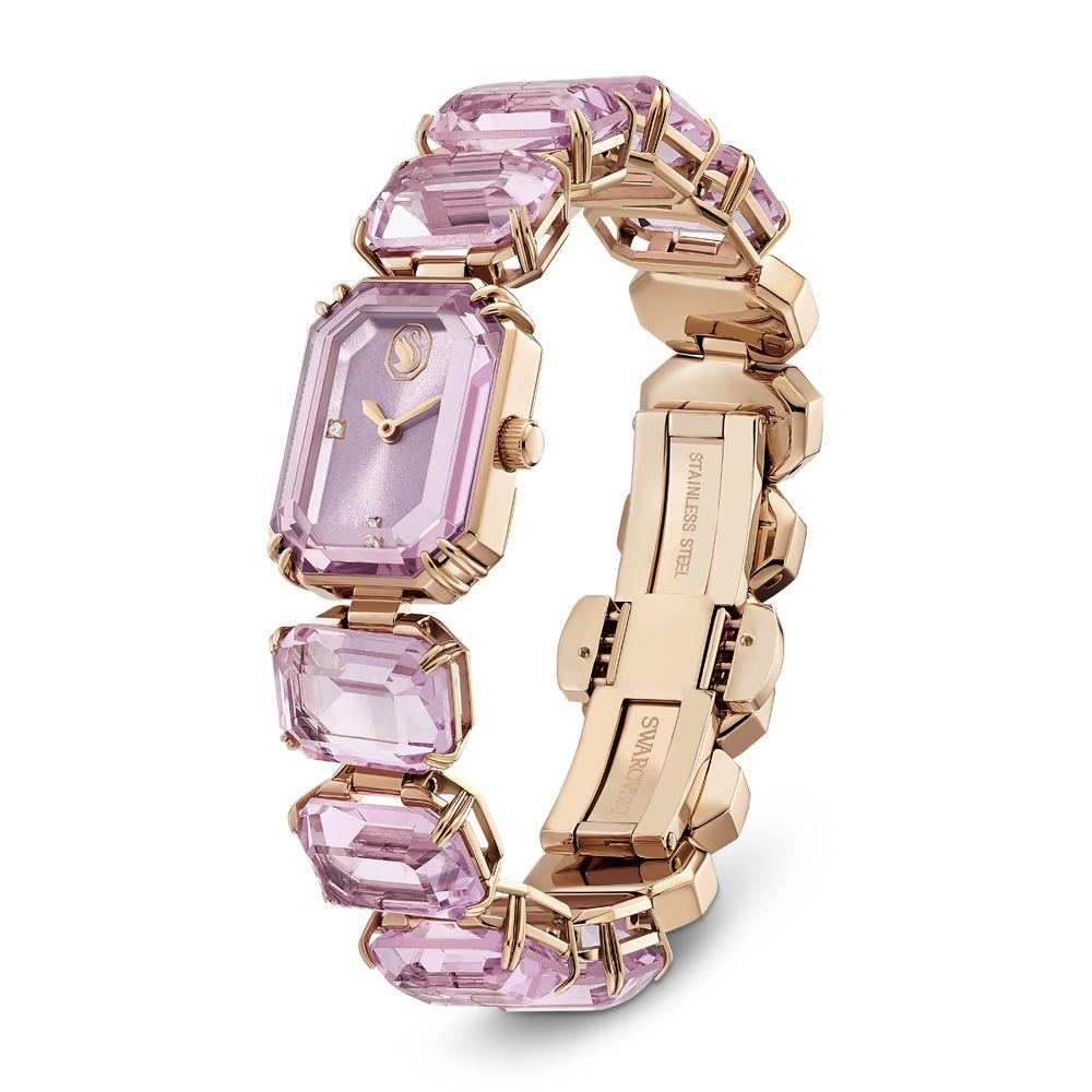 Inspirada en la familia Millenia, este llamativo reloj de pulsera ofrece un atractivo colorido. Elaborado por expertos con una hilera de cristales de talla octogonal en un vibrante tono rosa, cuenta con una pieza central de cristal de zafiro y un acabado en tono oro rosa. Sumergible hasta 50 m. Una opción de lo más alegre tanto para llevarlo solo como en capas.